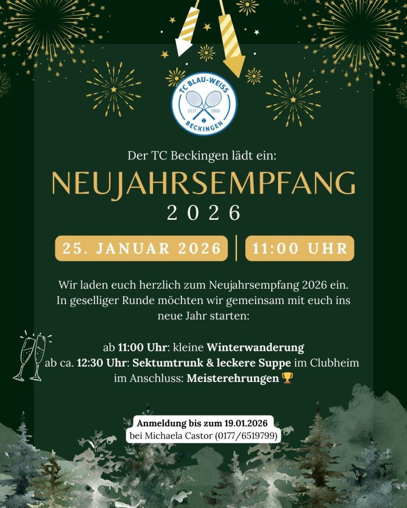 Hier auf unserer Homepage bieten wir Ihnen alles, was Sie über den Tennisclub Blau-Weiss Beckingen wissen wollen. Aktuelle Neuigkeiten, anstehende Events oder Zeitungsberichte – dies alles finden Sie hier bei uns. Ich wünsche Ihnen viel Spaß!