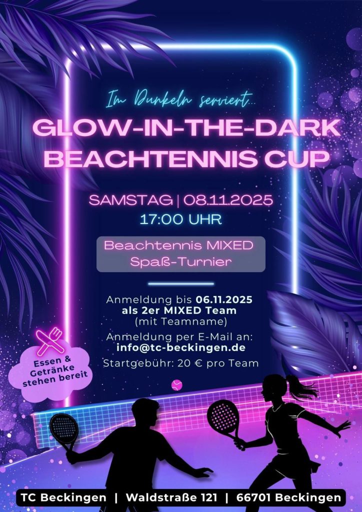 am 08.11.2025 könntet ihr an einem Beachturnier der besonderen Art teilnehmen: Glow in the Dark.